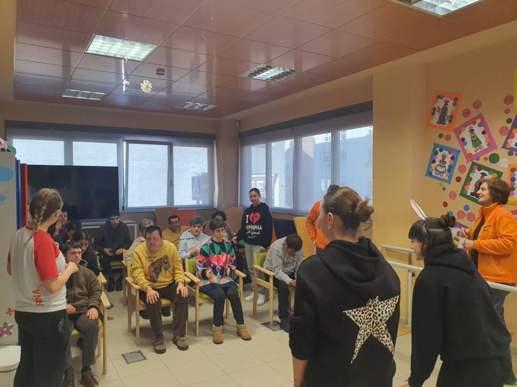 Los alumnos del instituto han venido al centro a hacernos una representación teatral interactiva, lo hemos pasado muy bien y nos han pedido una colaboración para una representación que se hará en carnaval en la Casa de Cultura del ayuntamiento de Arriondas. Dentro del programa de promoción y participación, los usuarios del CAI de Arriondas participan activamente en muchas de las actividades realizadas por los alumnos del Instituto El Sueve, el colegio Rio Sella y el CPR.