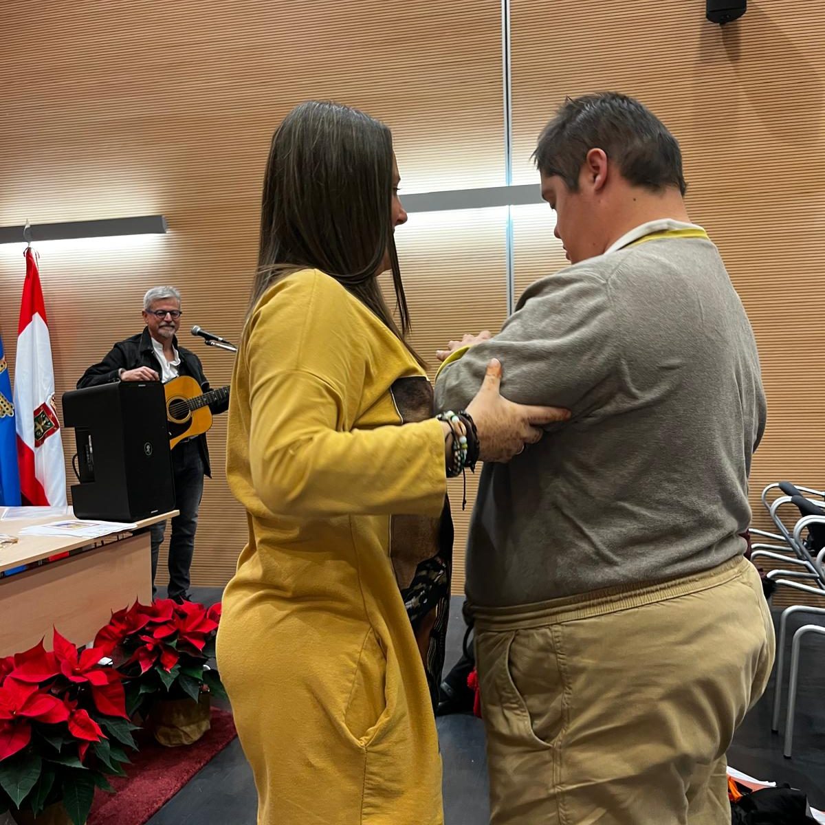 El programa incluyó un momento musical de bienvenida a cargo del cantautor Chema Aladro y un acto de amadrinamiento y apadrinamiento poético, en el que cada asistente de los distintos centros fue acompañado por un escritor o escritora de la AEA. Uno de los instantes más conmovedores llegó con el apadrinamiento de nuestra compañera Sara.