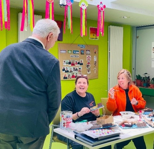 Para finalizar la jornada visitó los talleres del CAI donde pudo observar la producción que han realizado los usuarios y las usuarias en el marco del proyecto una Empresa en mi centro que lidera Valnalón. Productos que desde el Centro carreñense comercializarán el próximo Miércoles, 28 de Mayo en Gijón en el mercado anual de cooperativas.