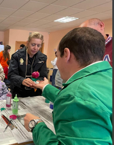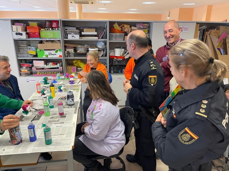 La comisaría acudió al centro de FASAD acompañada de Fernando del Pozo, delegado de participación ciudadana de la Policía Nacional de Avilés.