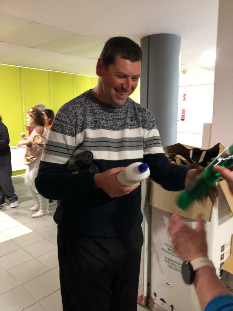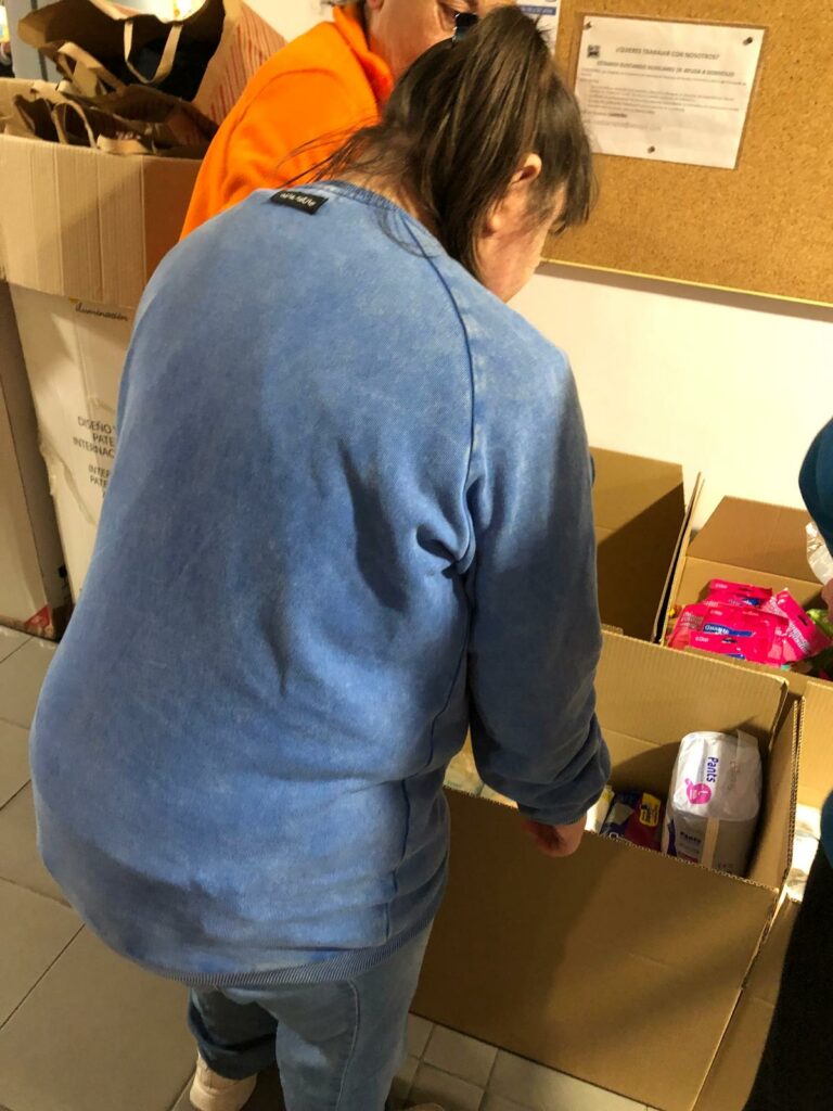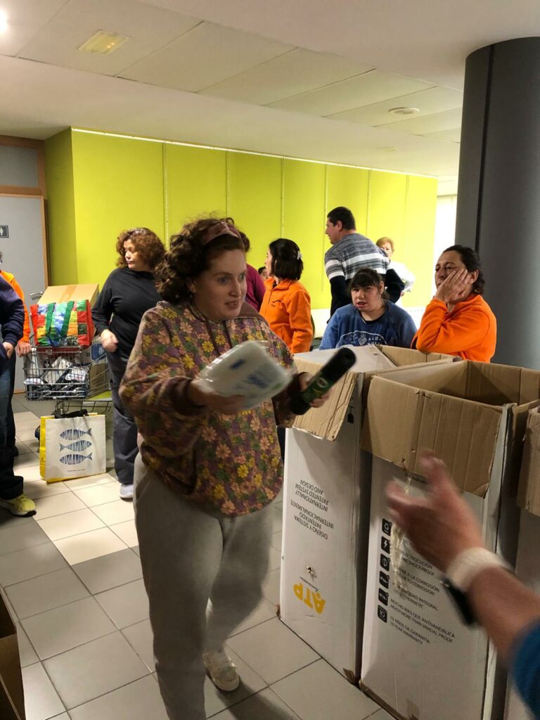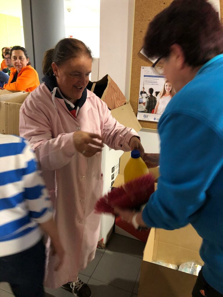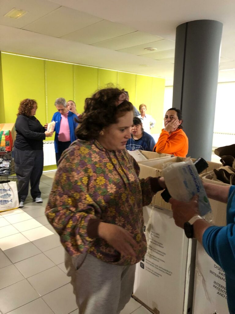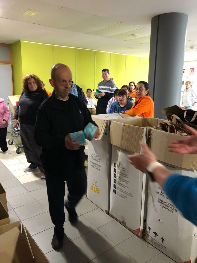 Todos juntos, personas usuarias y trabajadores/as ,hemos hecho entrega de la donación en el punto de recogida, aportando así nuestro granito de arena para que, al menos, nosotros/as también podamos contribuir a ayudar a la gente que ahora más lo necesita”.